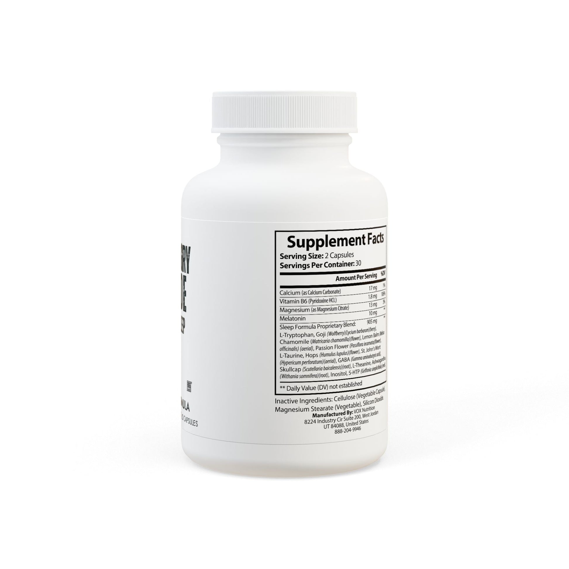 Ingredients: Calcium (as Calcium Carbonate), Vitamin B6 (Pyridoxine HCL), Magnesium (as Magnesium Citrate), Melatonin, Sleep Formula Proprietary Blend: L-Tryptophan, Goji (Wolfberry)(Lycium barbarum)(berry), Chamomile (Matricaria chamomilla)(ower), Lemon Balm (Melissa